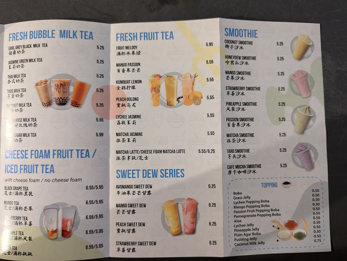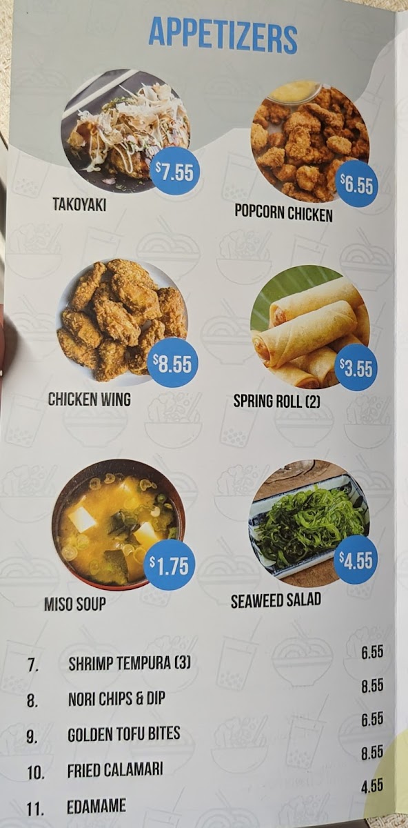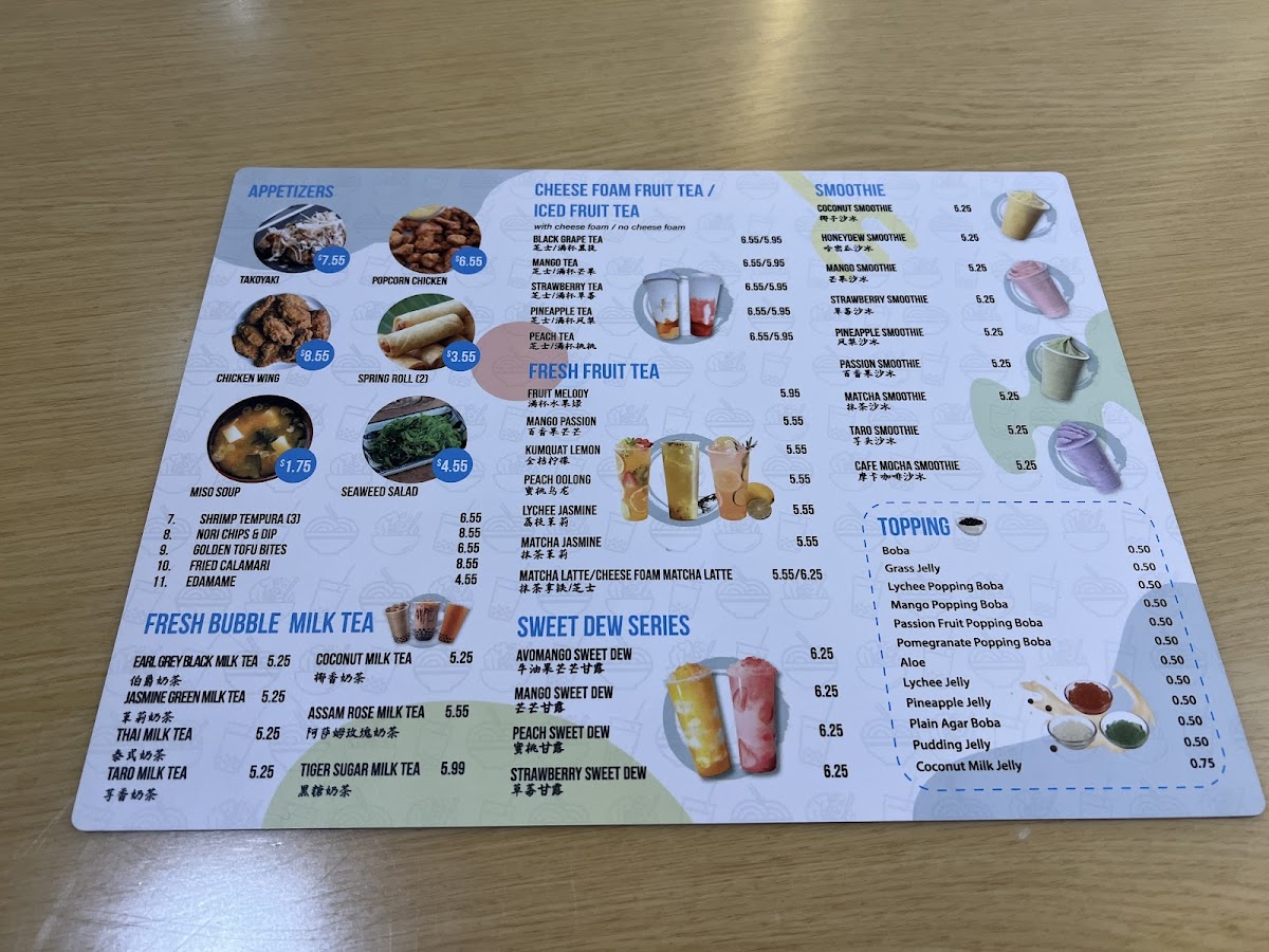 Light appetizers like Takoyaki and Chicken Wings complement the main dishes well, making it a great spot for sharing or sampling a variety of flavors. The drink selection features both classic and inventive options, including bubble teas like Tiger Sugar Bubble Milk Tea and unique choices such as GRE Earl Grey Tea with Caramel Boba — ideal for pairing with your meal or simply to enjoy on its own in a cozy setting.